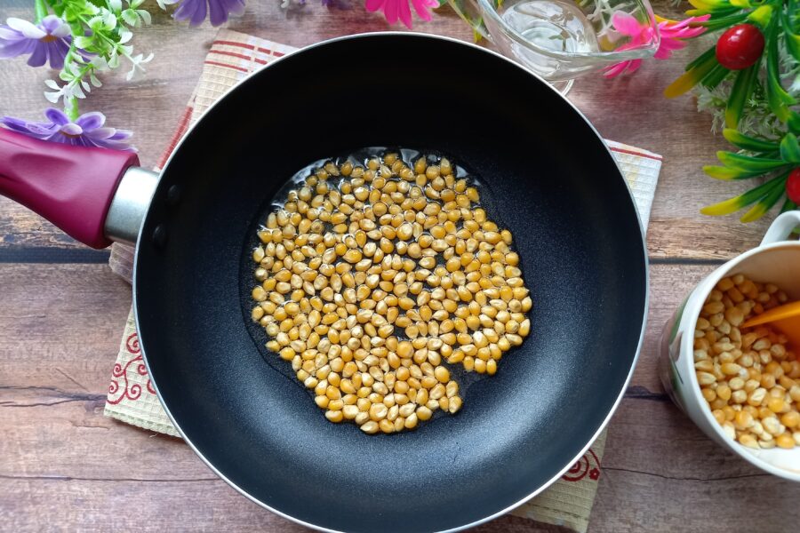 - Pour the contents into a bowl. Now all you have to do is decide whether to make it sweet or savory. Do the same with the rest of the oil and corn kernels. And a delicious treat is ready.