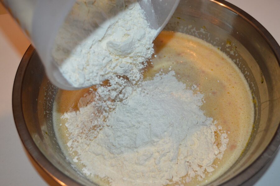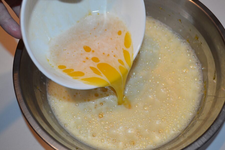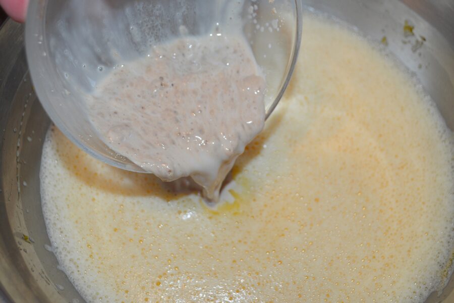 - Pour the dry yeast into a little lukewarm milk at room temperature. Add a teaspoon of sugar and stir. Cover with a plate and leave for 10-15 minutes to react.