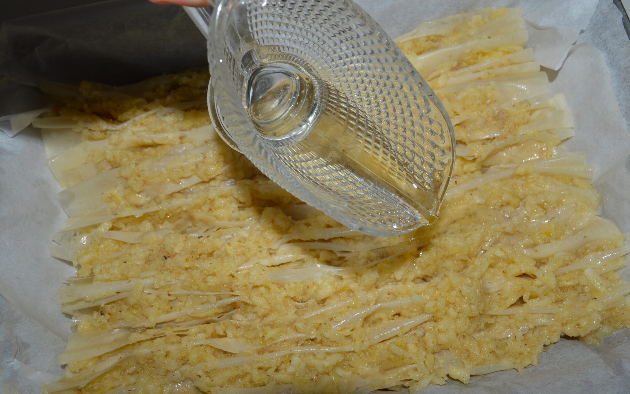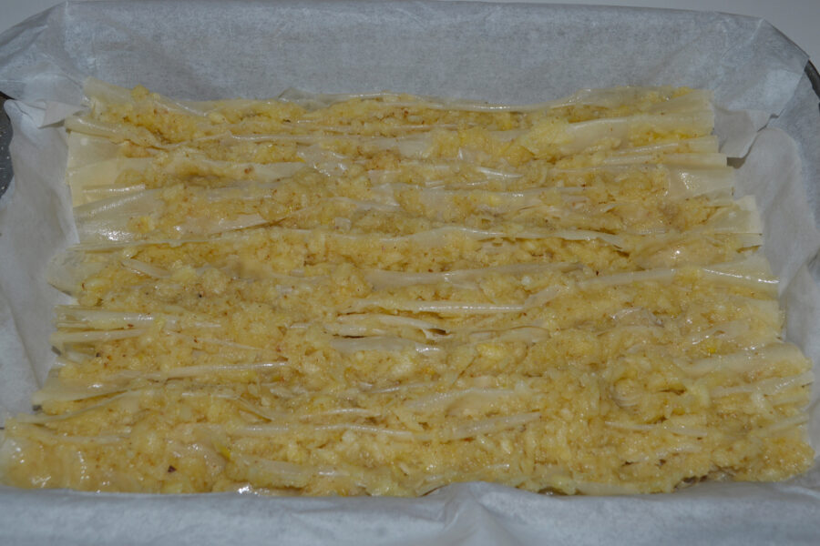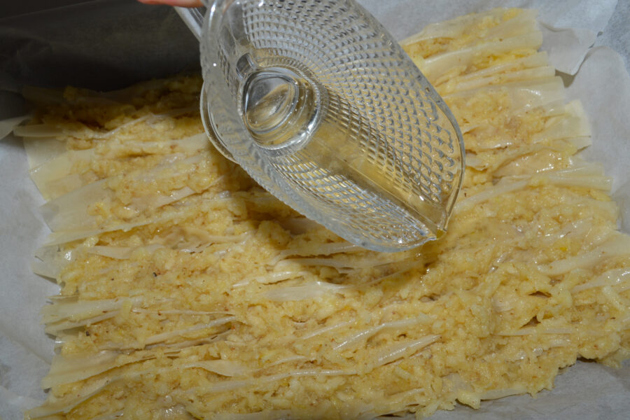 - Grease the phyllo sheet with oil.