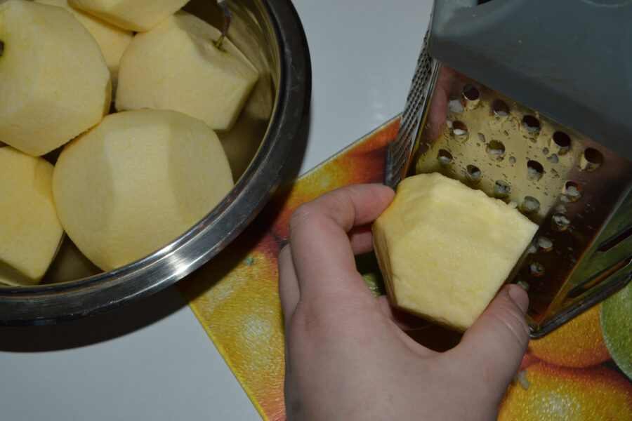 - Peel the apples and grate them using a coarse grater.