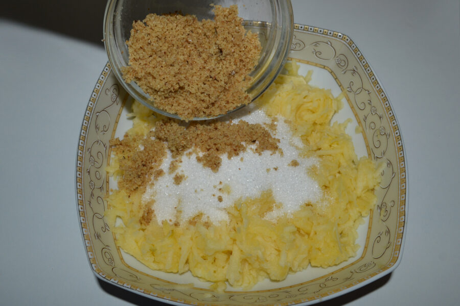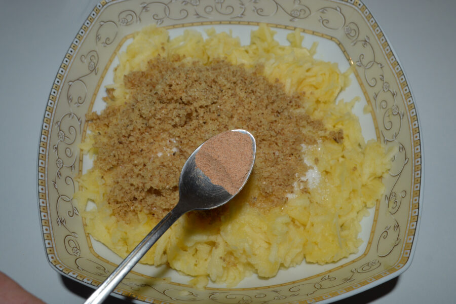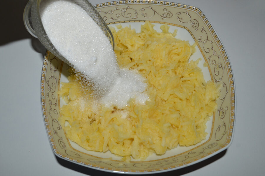 - Add the sugar to the grated apples.