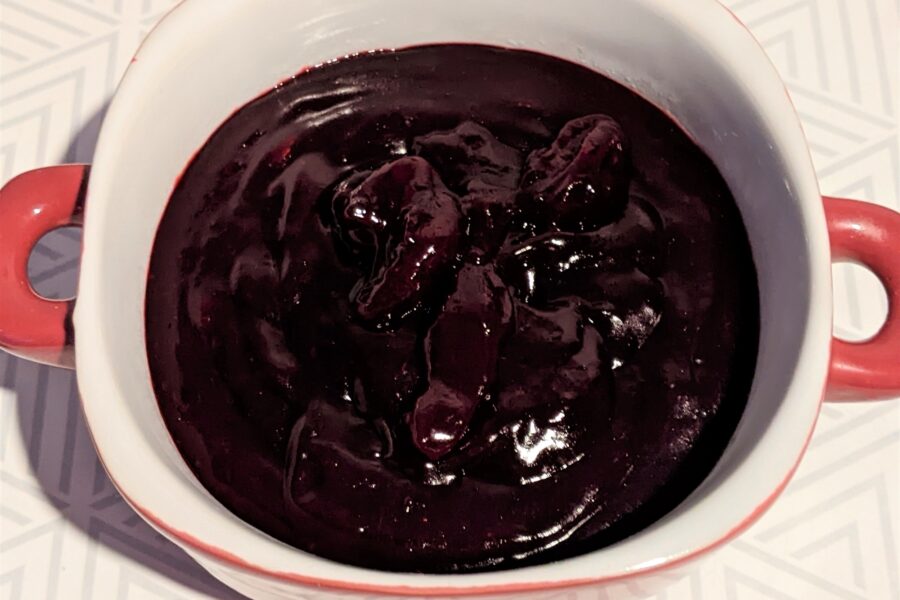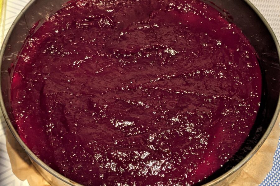 - Add the sugar and starch diluted with water to the berry puree and boil until thickened. Cool and cover with cling film.