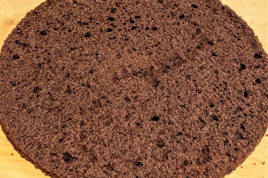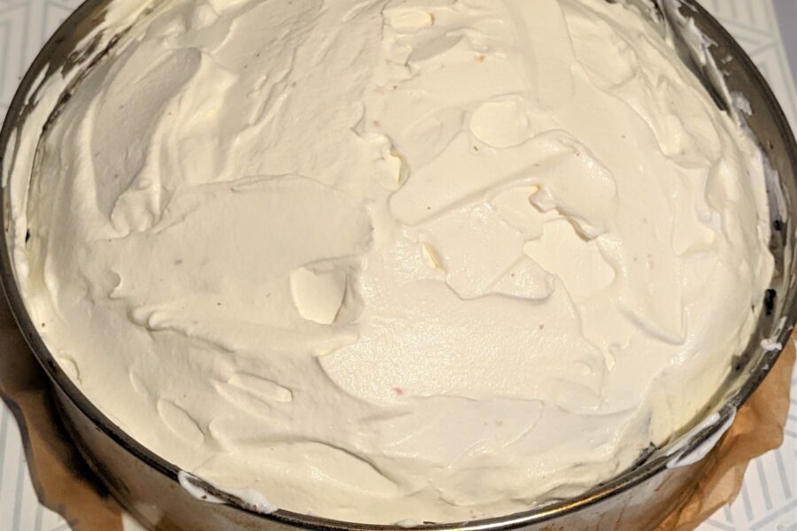 - Place the third layer of cake on top of the cream. Since I didn’t cut the top, the cake turned out a little dome-shaped.