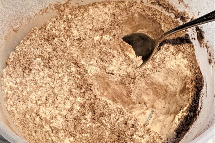 - Sieve together the flour, cocoa powder, baking soda, and salt, then mix everything together.