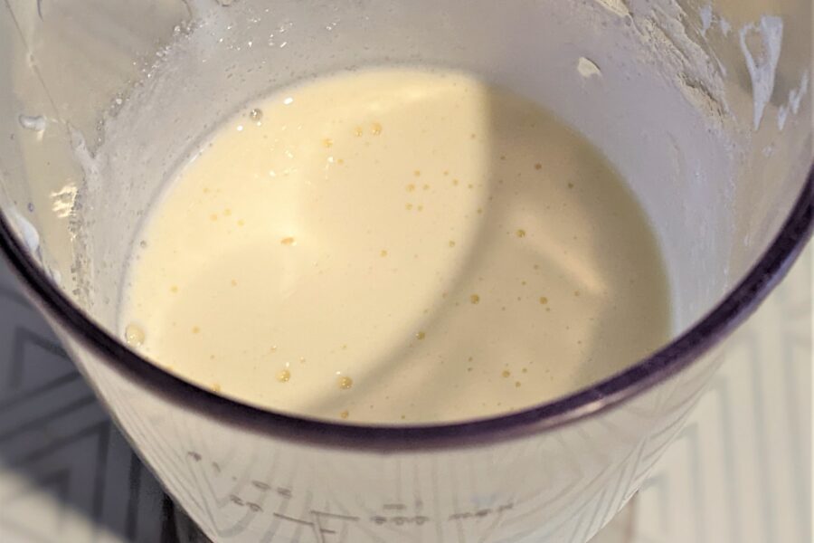 - Beat the sugar (it is a liquid ingredient) with the eggs until they turn white. Add the softened butter, vegetable oil, and warm milk. Combine both mixtures, stir, pour in the vinegar, and stir again.