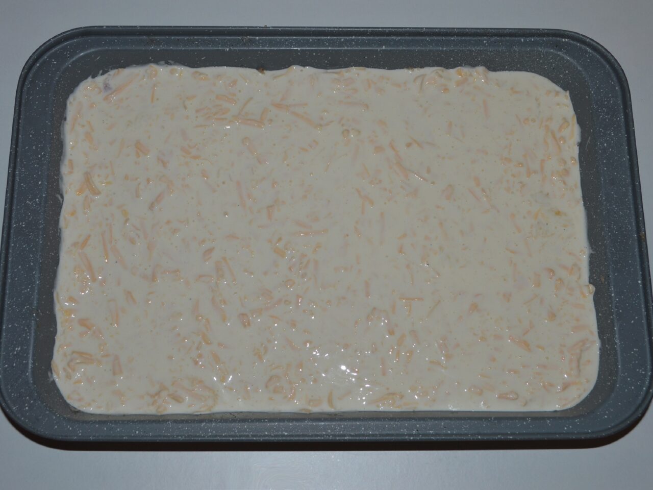 - Pour the mixture over the minced meat.