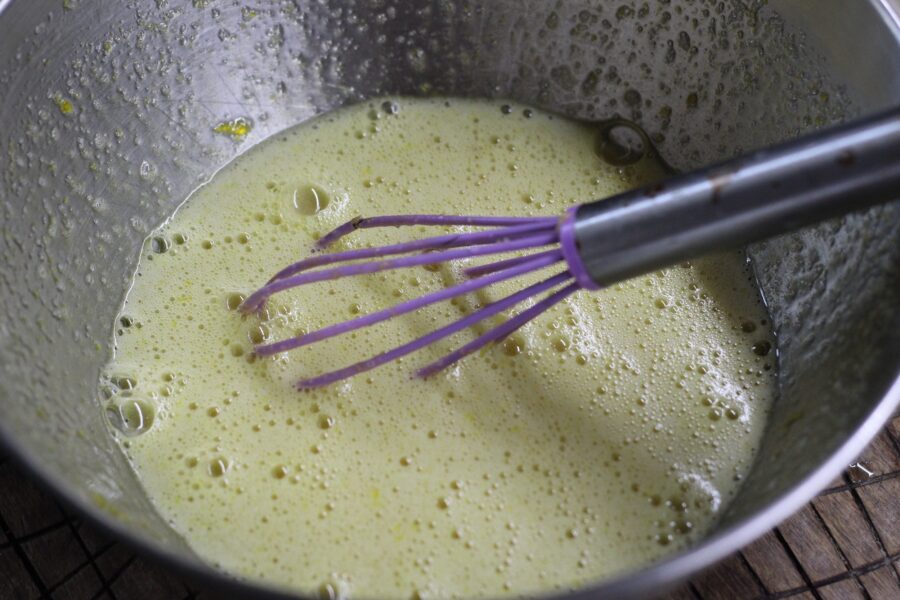 - First, beat the eggs with the vanilla, sugar, and salt until smooth. Add the citrus zest.