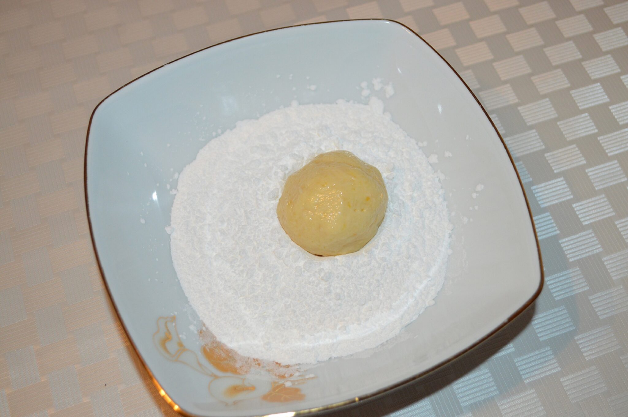 - Form small balls from the dough with wet hands and roll them in powdered sugar.