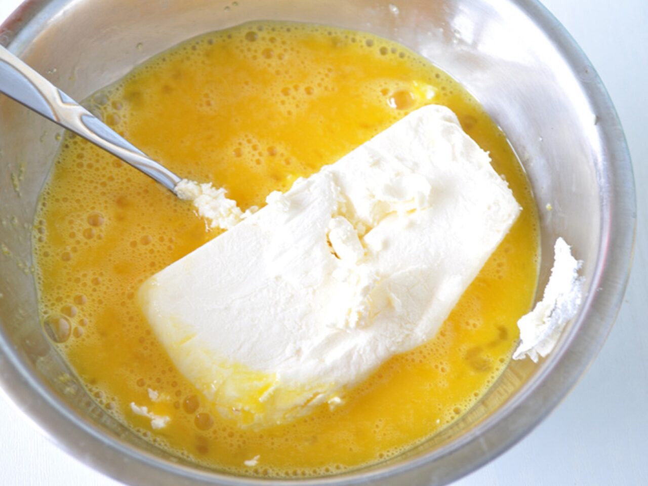 - Place the mixture over low heat or in a double boiler and melt the ingredients. I thought my bowl was too small, so I poured the batter into a larger bowl.