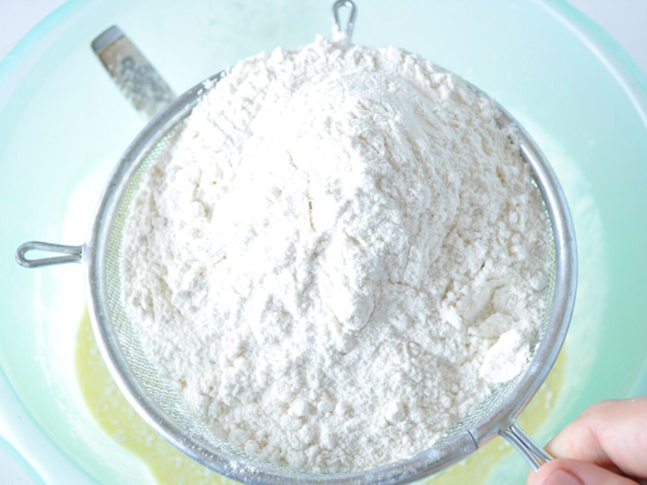 - Pour the flour into a sieve and sift it into the mixture.