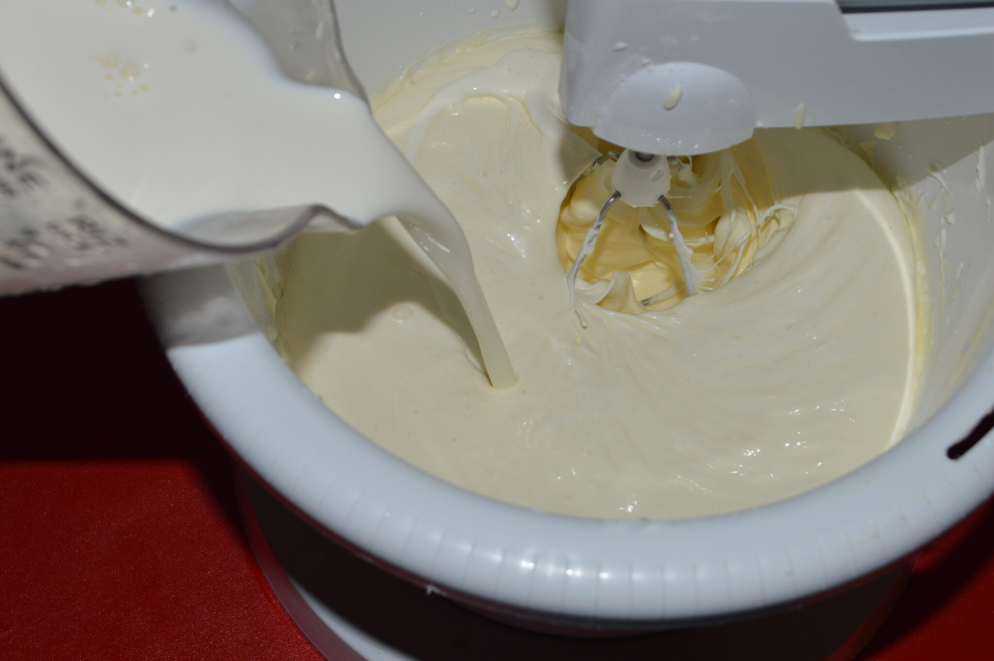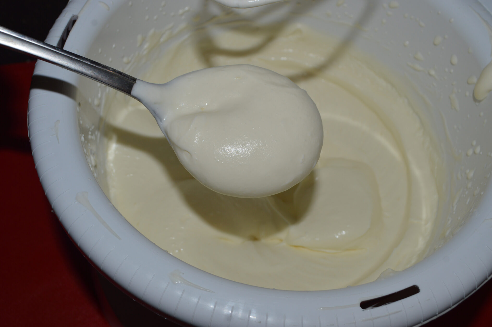 - Finally, add the 33% whipping cream and beat well with a mixer until the cream thickens.