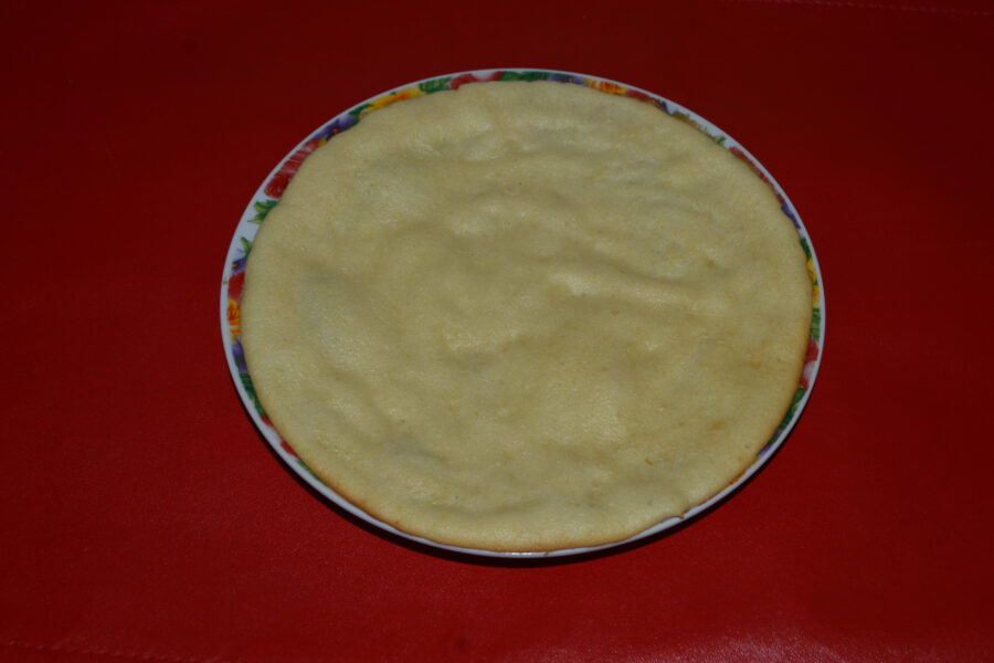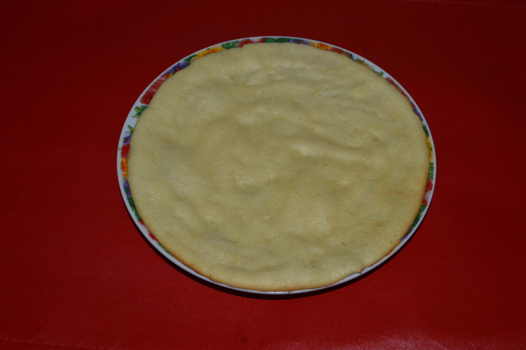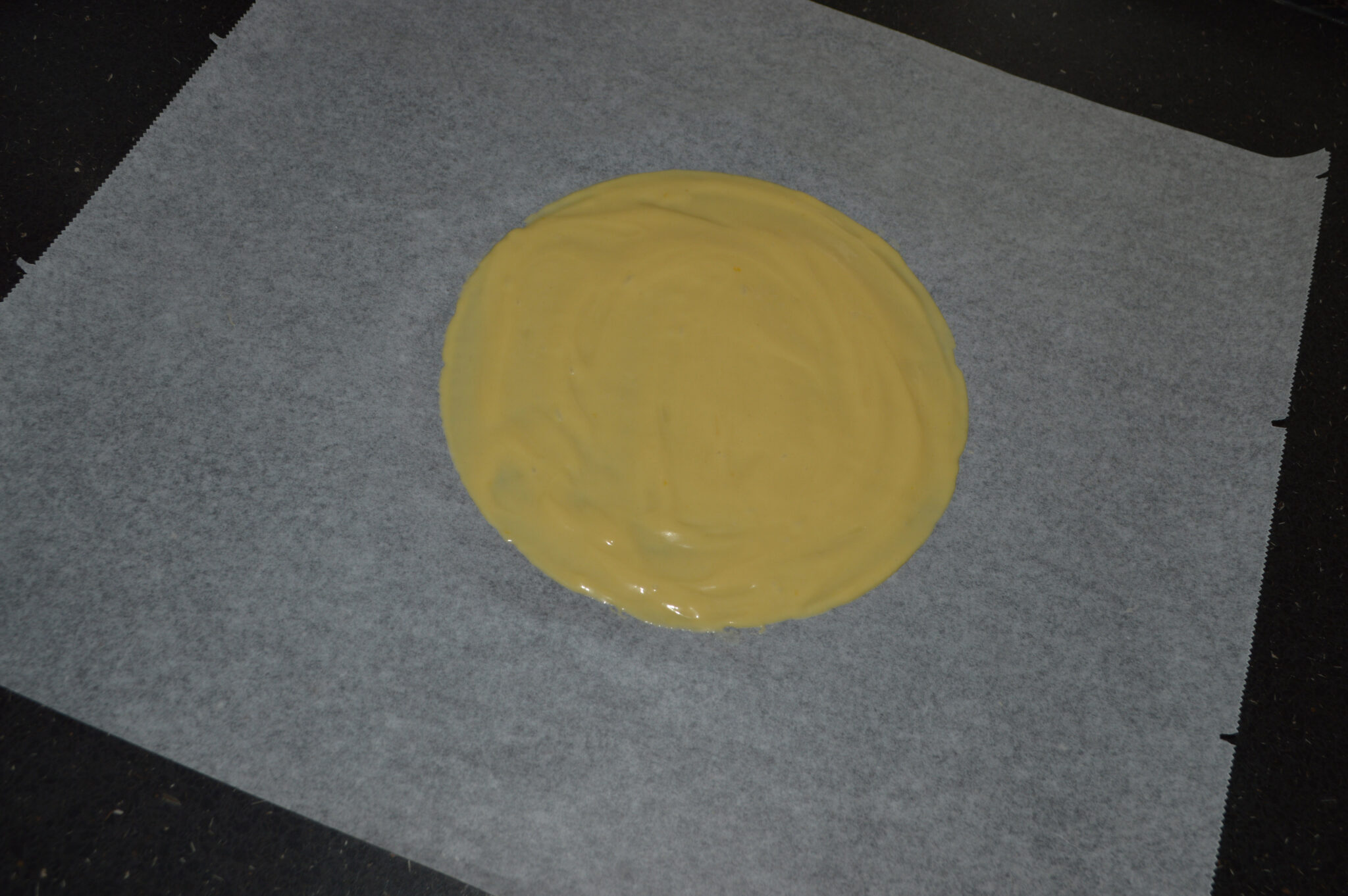 - Transfer the baking paper with the dough circle to a large baking tray and bake for about 3-4 minutes at 180 degrees C.