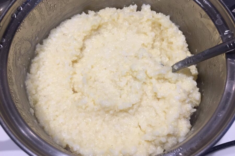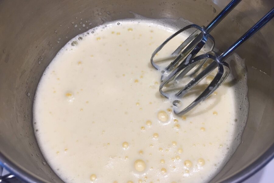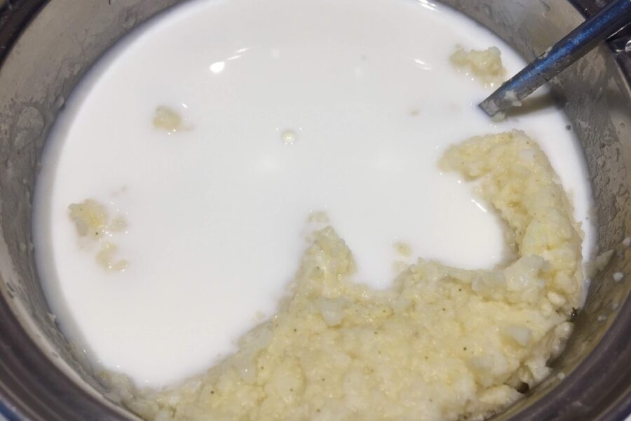 - Add milk to the porridge and stir the mixture using a mixer or whisk.