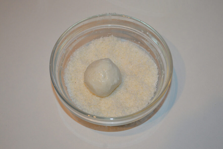 - Then roll each ball in shredded coconut.