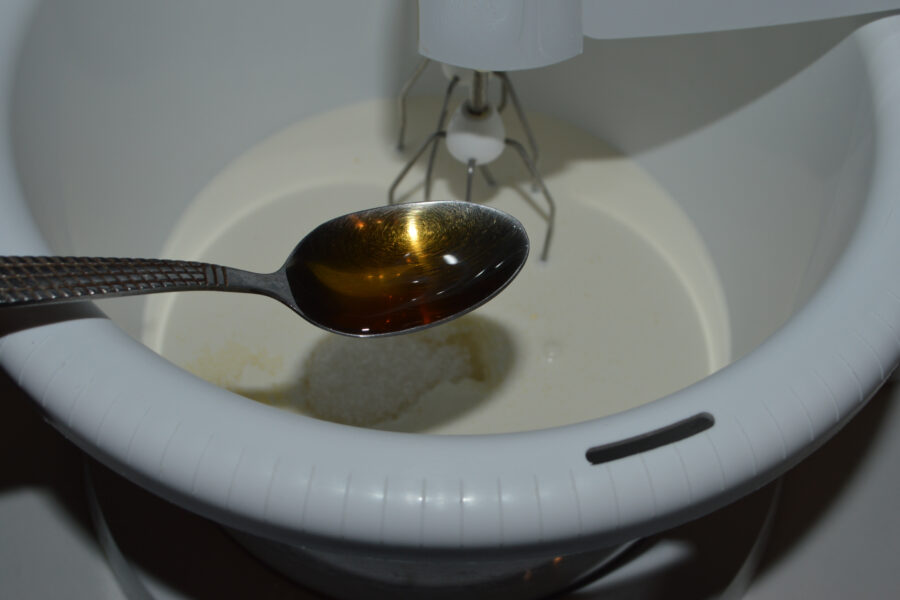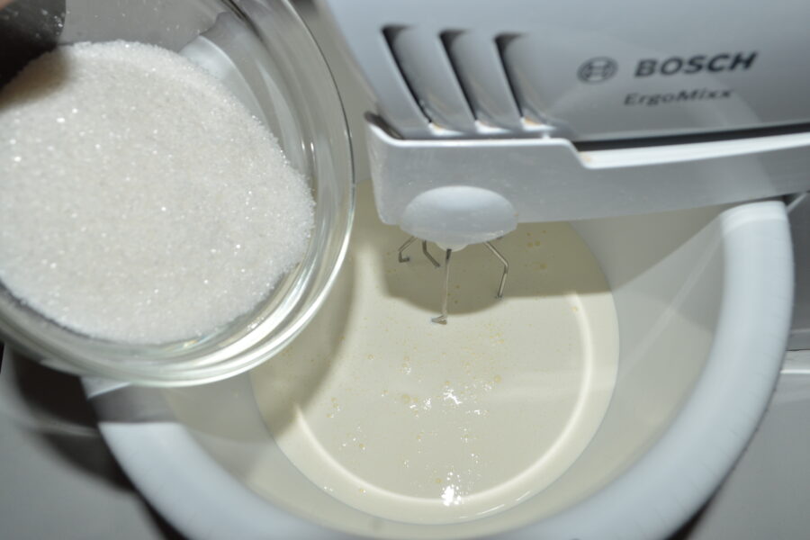 - Beat with a mixer on high speed for 4-5 minutes until the cream thickens.