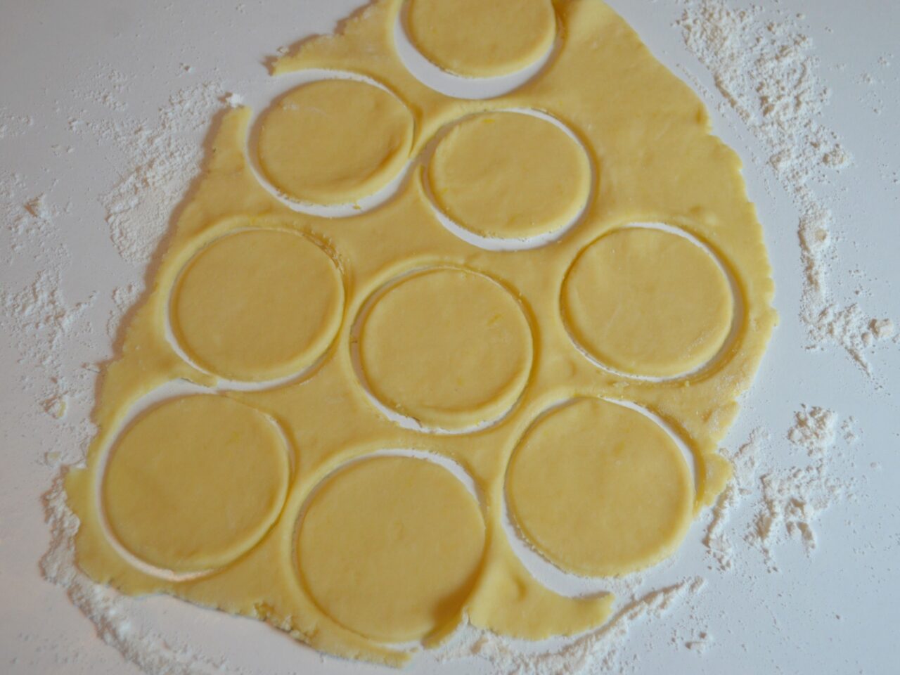 - Using a round cutter or a small cup, cut out circles from the dough.