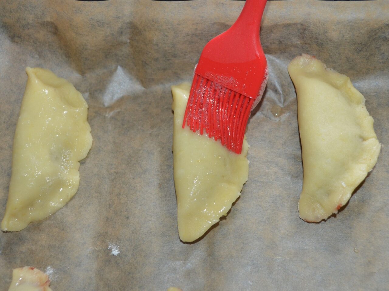 - Transfer the crescents to a baking sheet lined with parchment paper. Beat an egg white with a fork, and grease each crescent with a pastry brush.