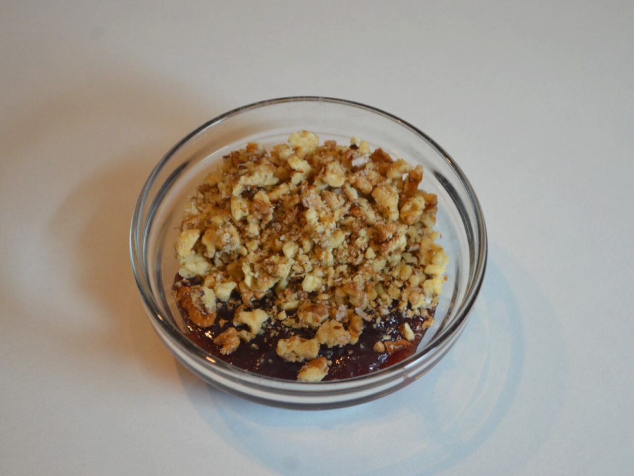 - Chop the nuts in a blender and add them to the jam. Mix well.