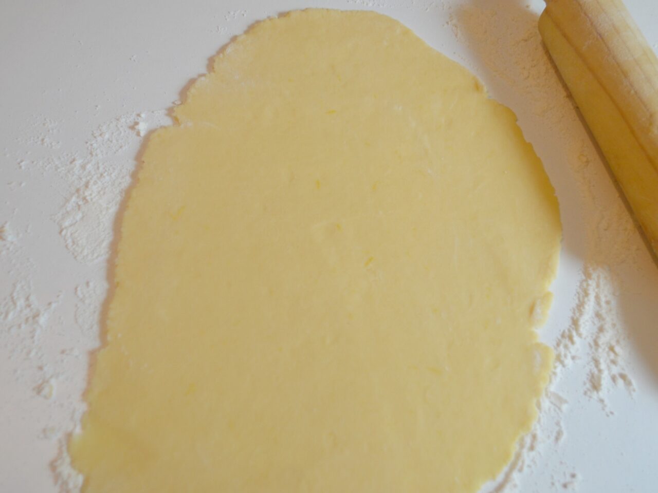 - After the dough has rested in the refrigerator for the specified time, sprinkle flour on the work surface, remove the dough from the foil, and roll it out with a rolling pin.
