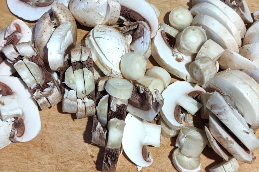 - Clean the mushrooms and wipe them with paper towels, then slice them.