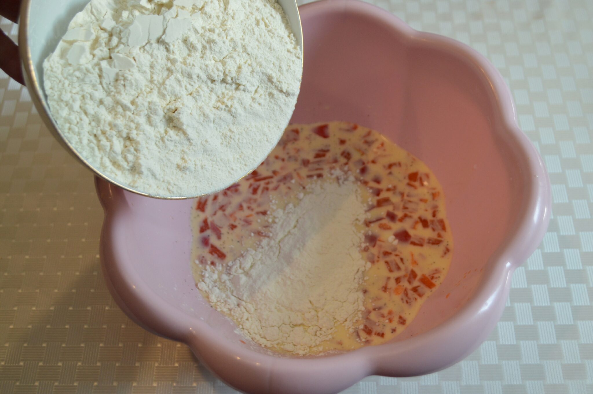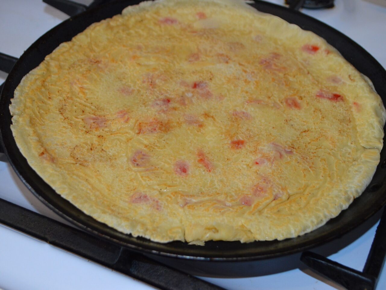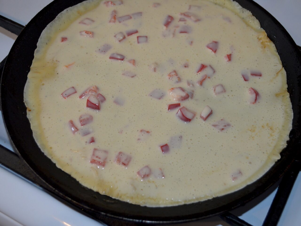 - Pour one ladleful of the mixture into the pan and cook the pancake.