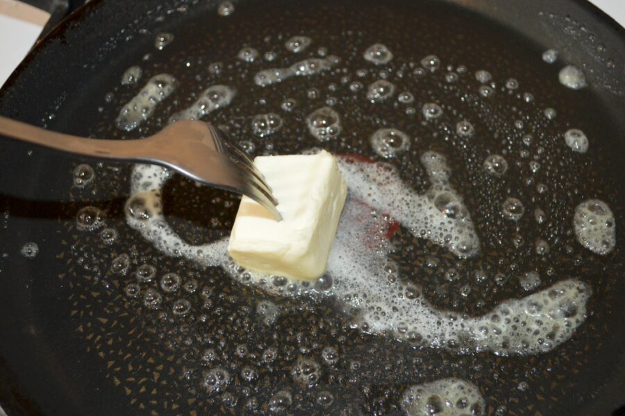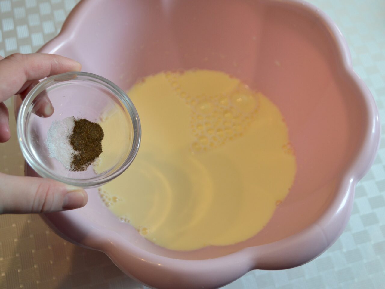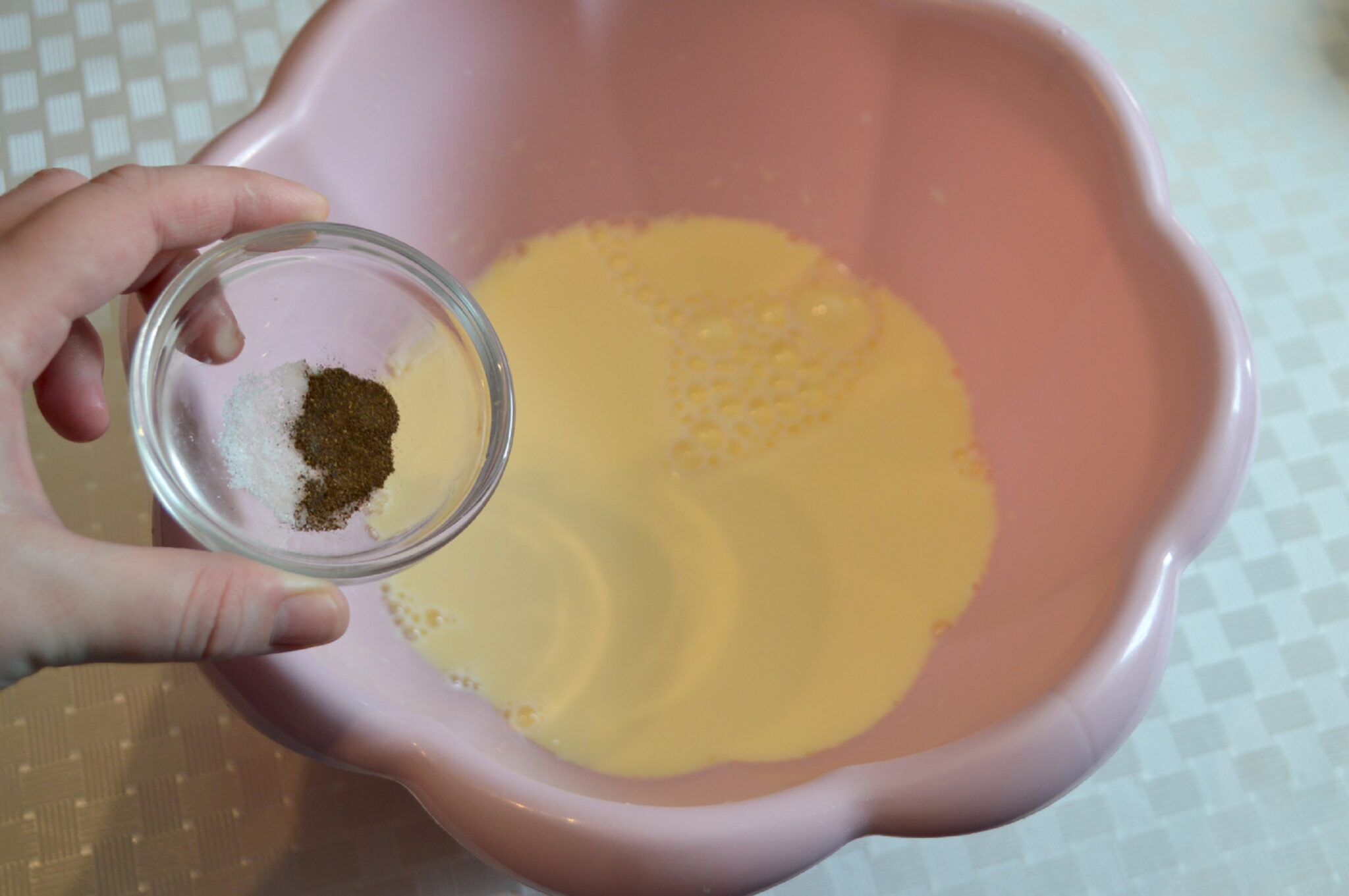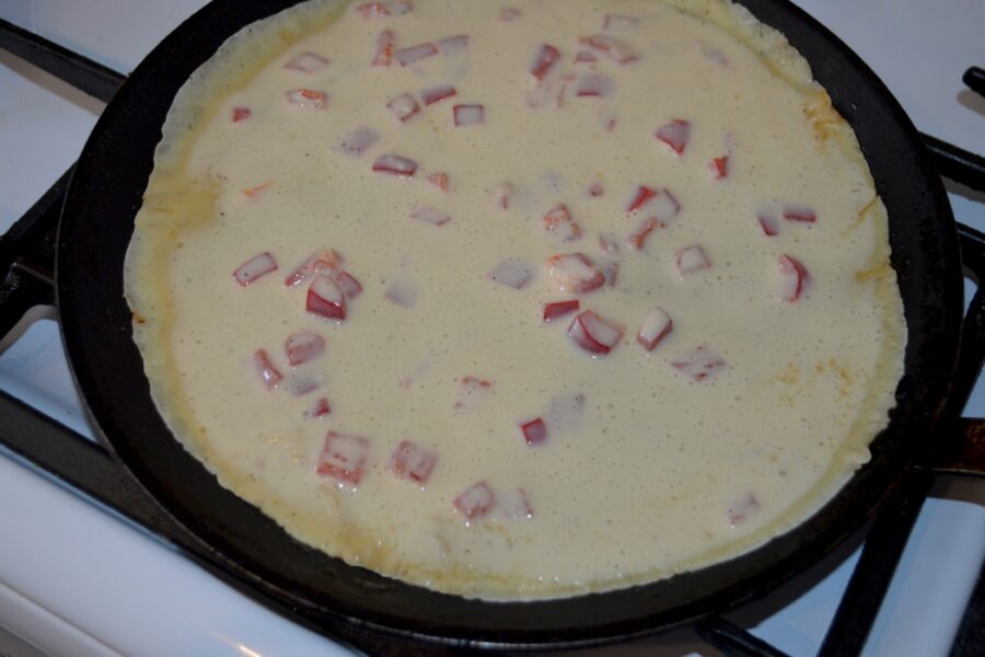 - Pour one ladleful of the mixture into the pan and cook the pancake.