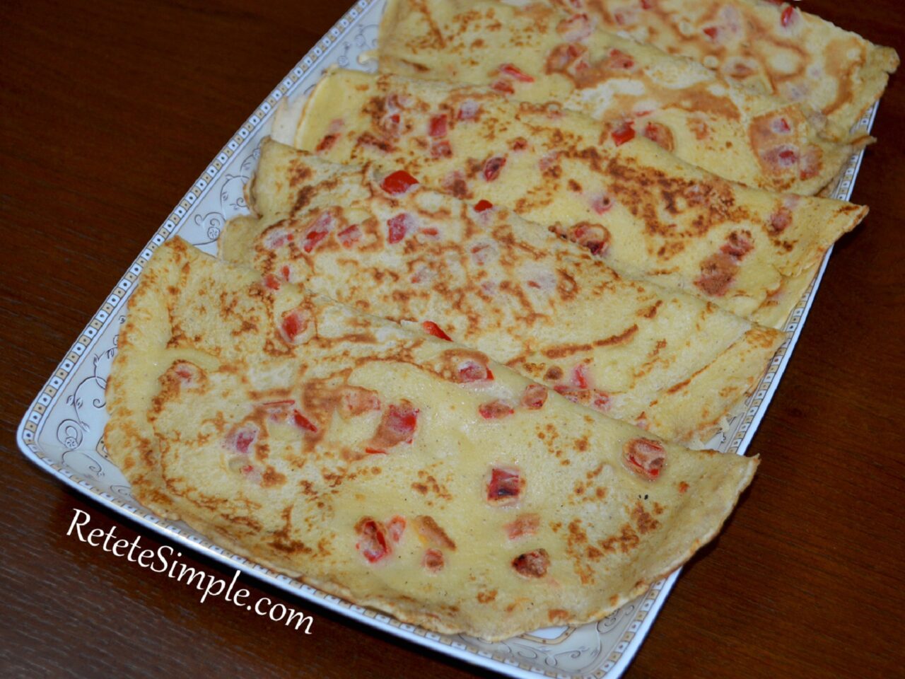 Appetizer pancakes with pepper and cheese bring together soft batter and vibrant fillings for a satisfying bite. These clatite work well as starters, snacks, or party treats. We are used to thinking of sweet pancakes with jam, chocolate, or cottage cheese when we hear the word “pancakes,” but there are also various recipes for savory pancakes. Easy to make, with crispy peppers, melted cheese, and a soft, thin batter, they are perfect for a quick snack, a different breakfast, or as a festive appetizer. They are very delicious and not at all complicated to prepare.