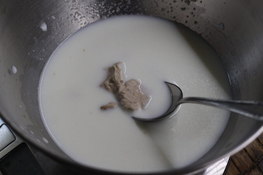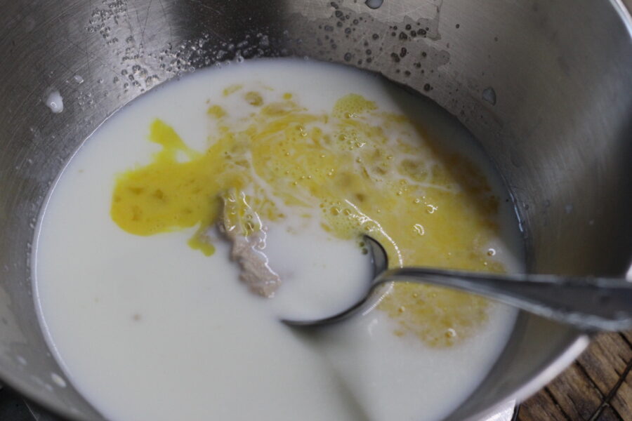 - To prepare the dough, dissolve the sugar in warm milk together with the yeast, vanilla, and salt.