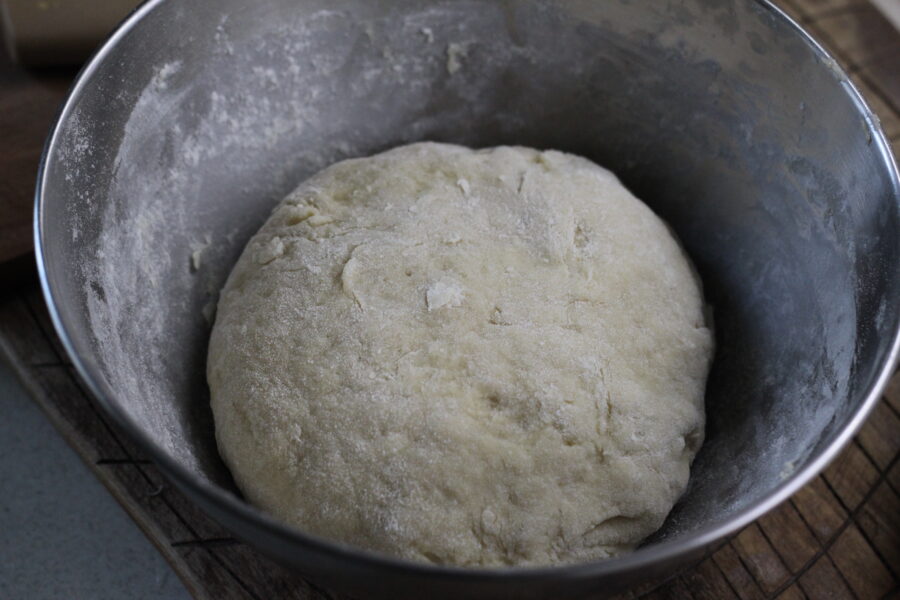 - Beat the egg and add half of it to the dough.