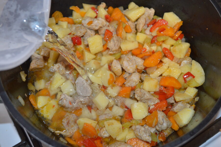 - The pork and potato stew is ready. Enjoy your meal!