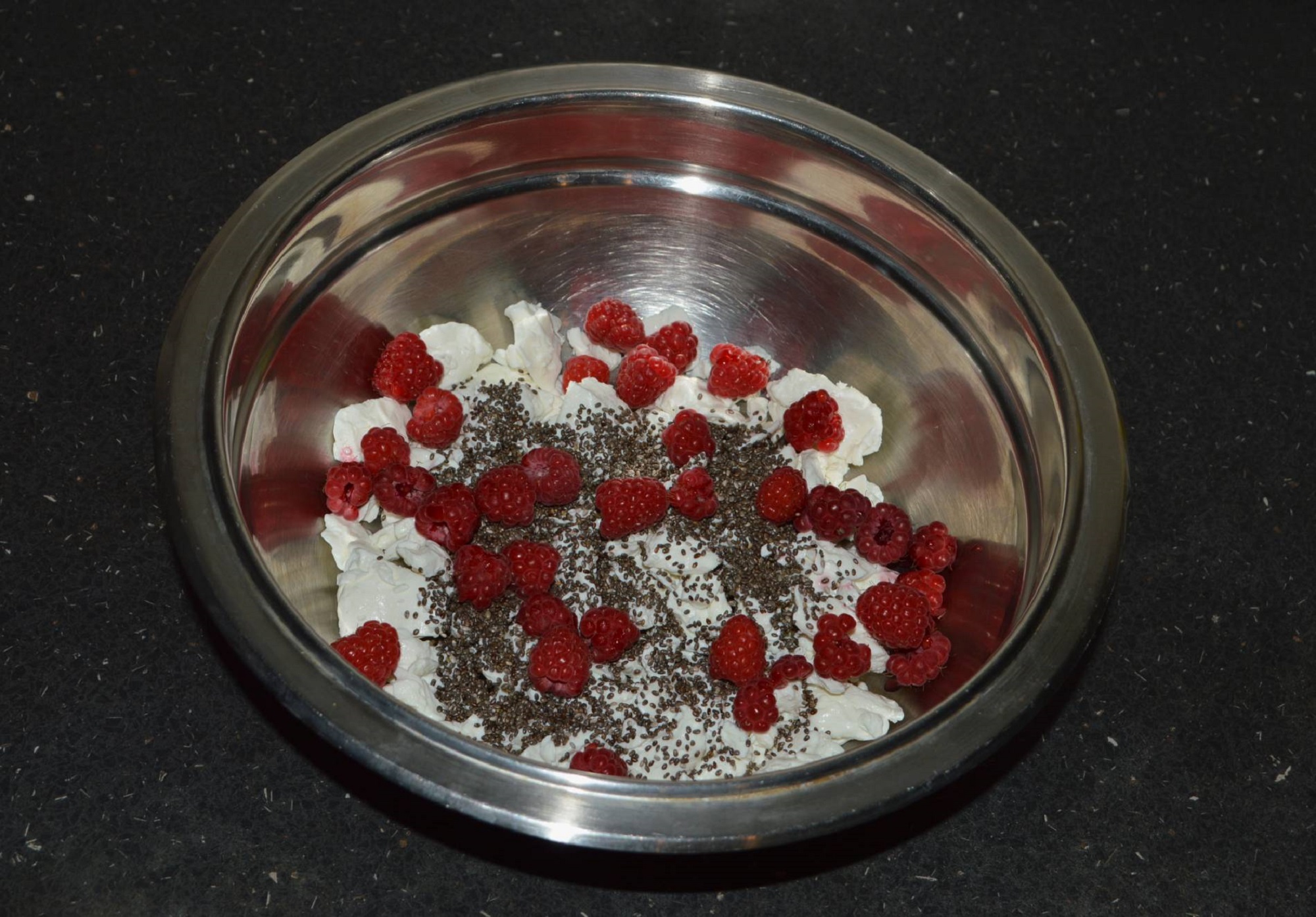 Try a delicious combination: chia seeds, raspberries, and cottage cheese. A nutritious, no-bake dessert, ready in just a few minutes.