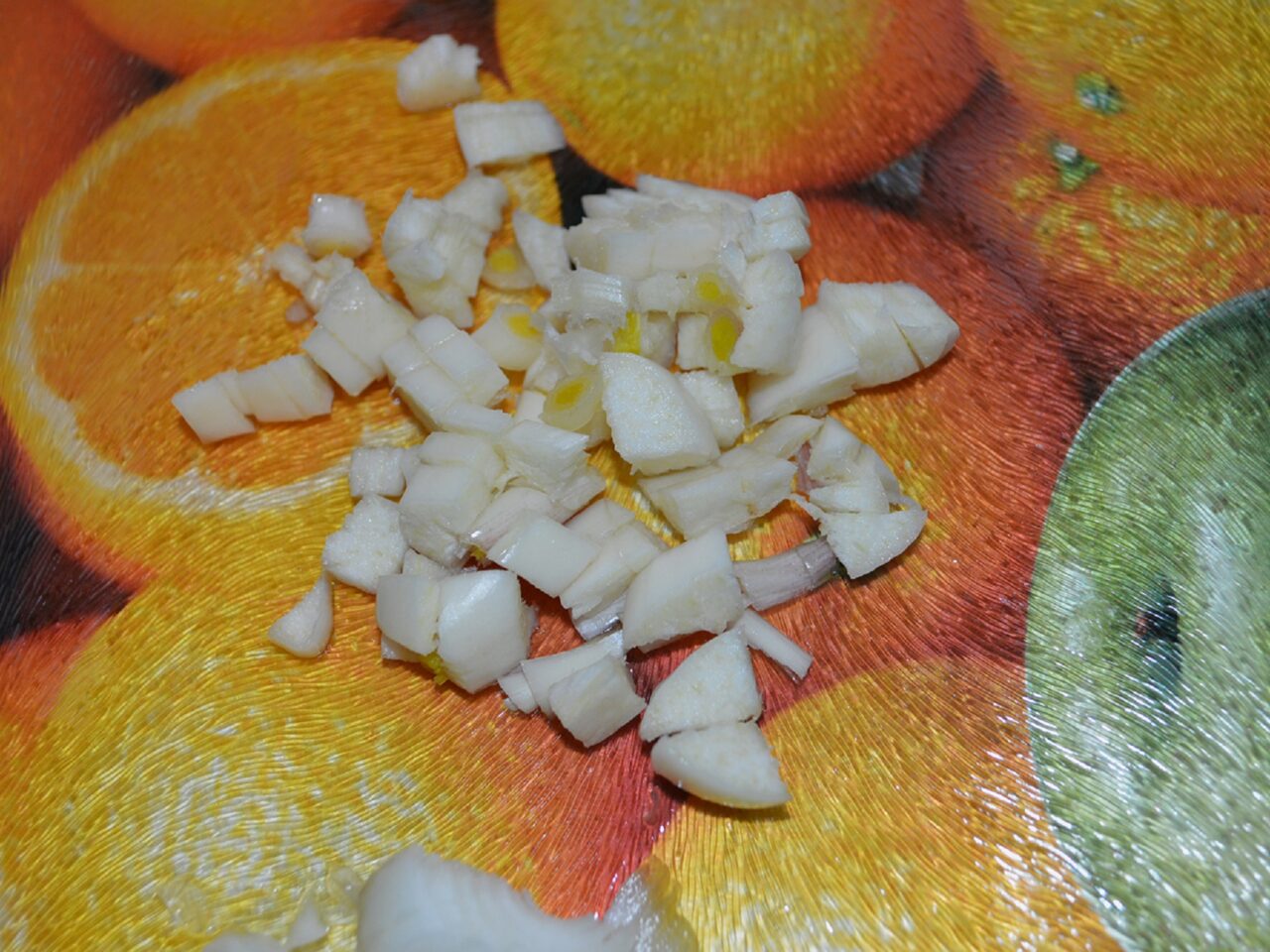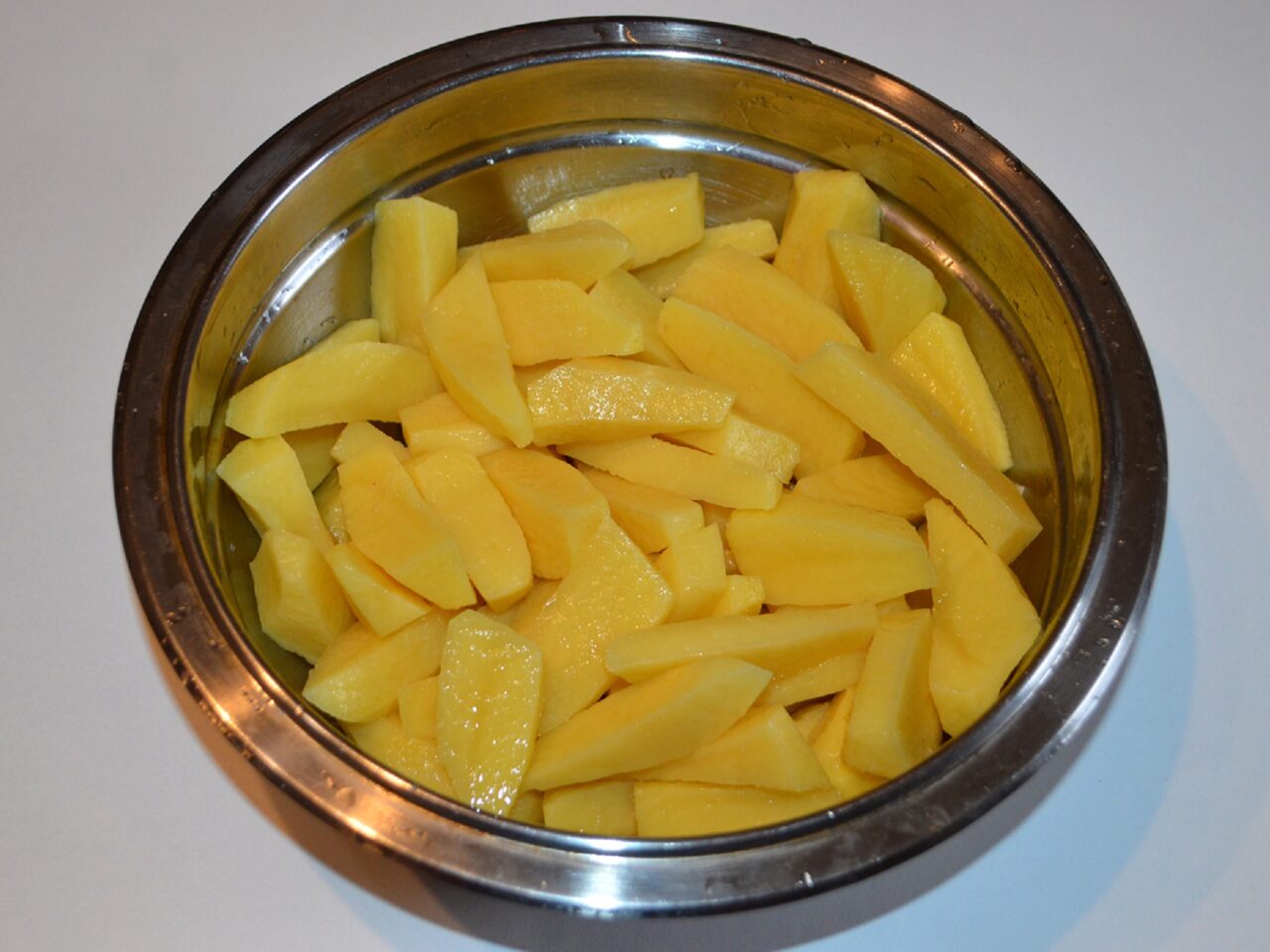 - Meanwhile, peel and roughly chop the potatoes. Sprinkle with a little salt.