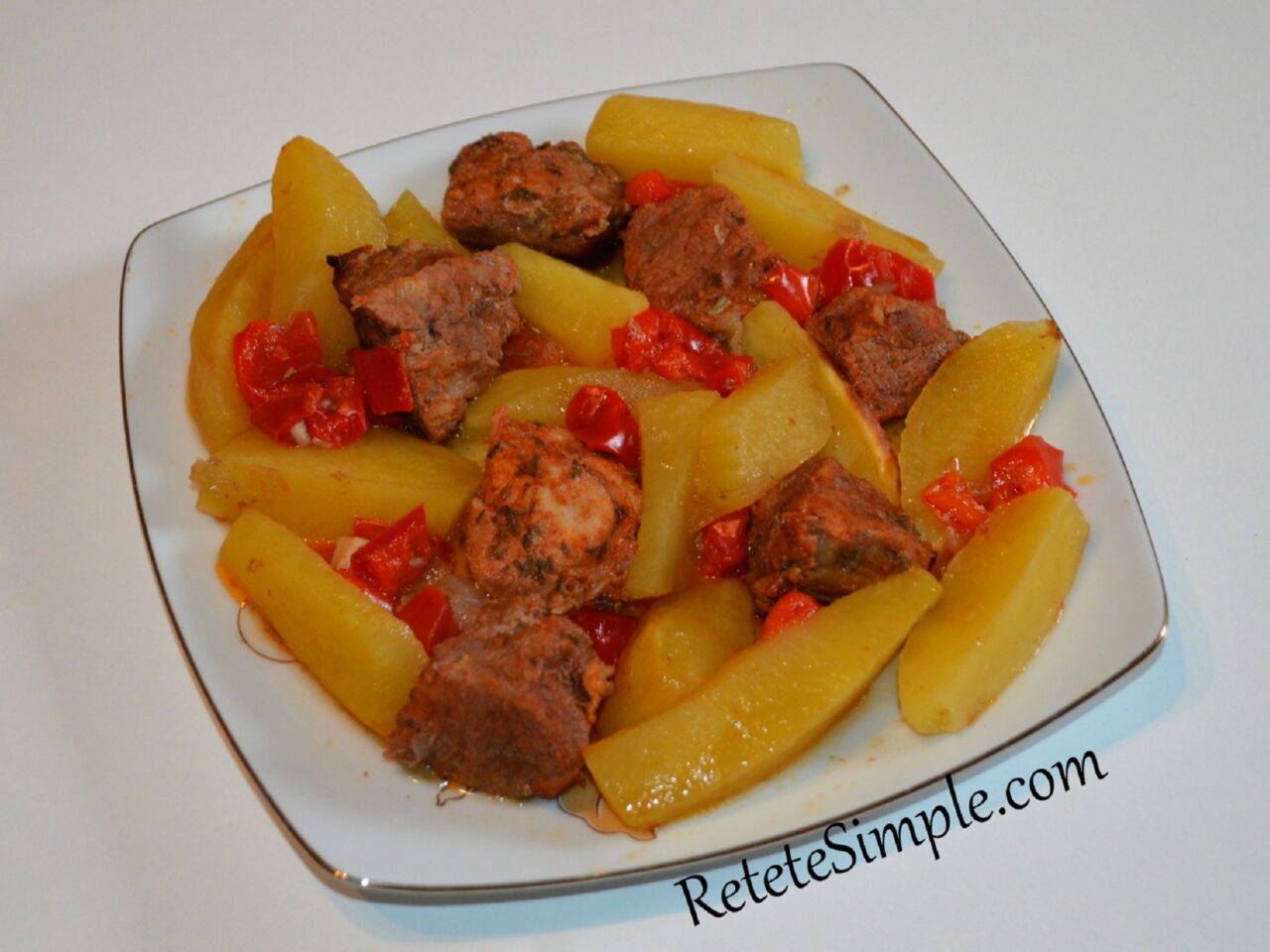 Juicy pork combines with aromatic garlic, tender potatoes, and vibrant bell peppers. Everything roasts together, letting flavors meld. It’s a dish you can serve for dinner or when guests come — hearty, straightforward, and rich in aroma.