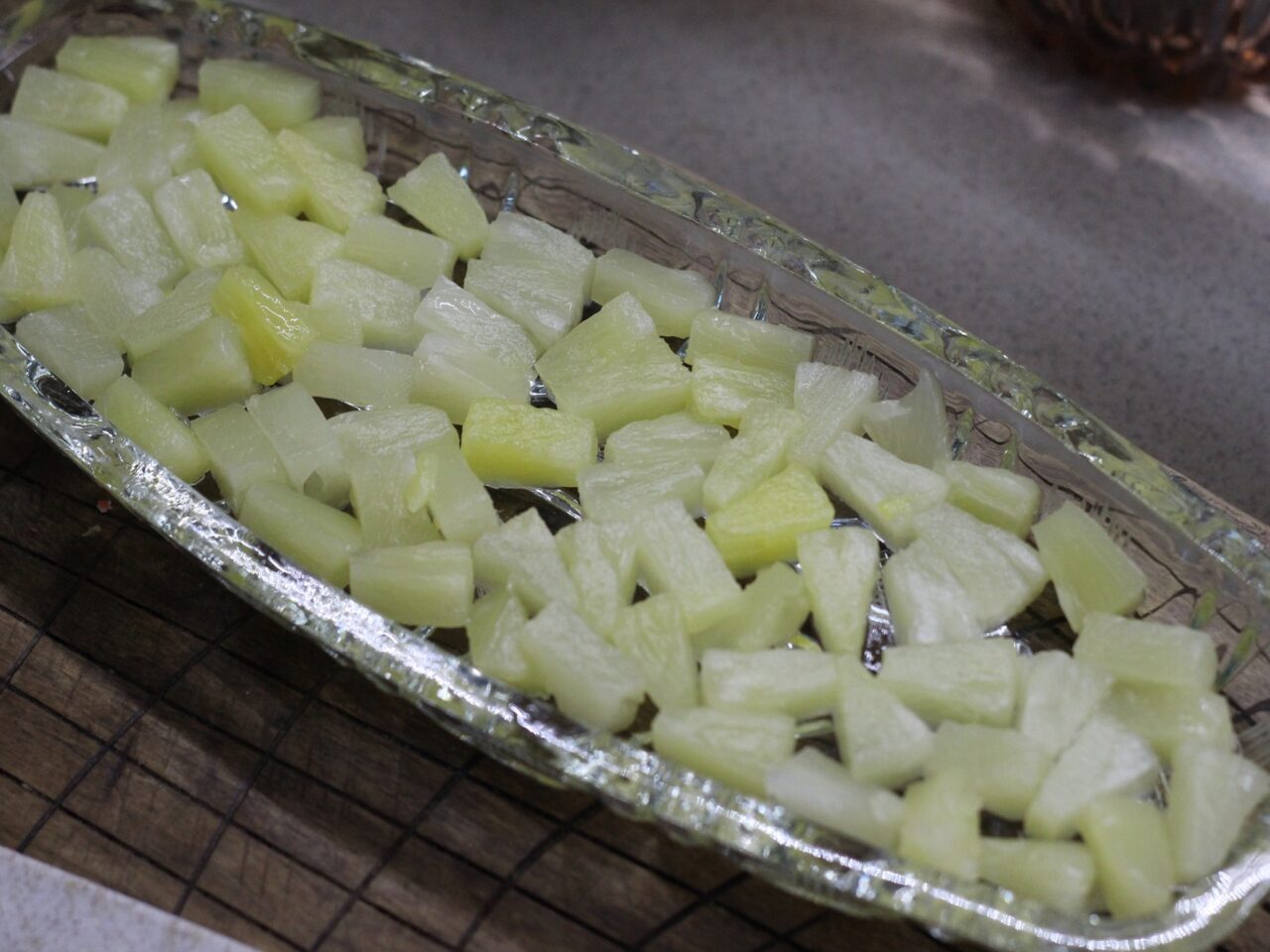 - First, you need to remove excess moisture from the canned pineapple. To do this, use a colander and paper towels. The pineapple should be finely chopped and placed in a salad bowl as the first layer. Pour the mayonnaise over the fruit layer.