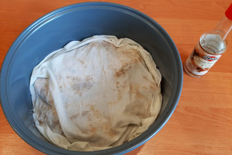 - Take a cotton or linen towel. Wet it with water and wring it out, then cover the meat with the damp towel. Sprinkle the towel with vinegar. A few drops are enough.