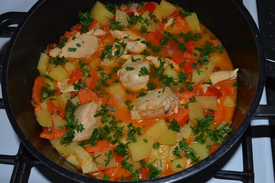 - The stewed potatoes with chicken are ready! Enjoy!