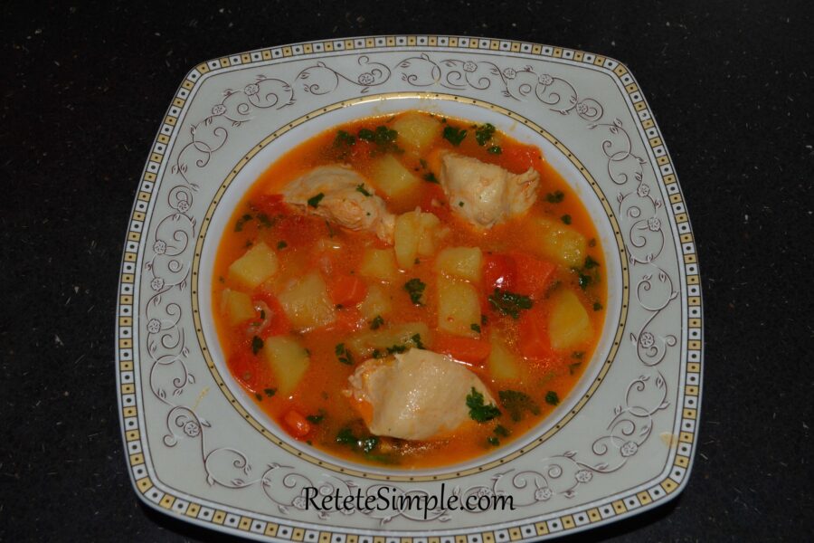 Potatoes with meat are among the most beloved Romanian dishes. It is a classic, simple, and affordable recipe that is easy to prepare using the simplest ingredients that can be found at any time of the year. Tender chicken with juicy potatoes and vegetables go very well together, creating a lunch that everyone will enjoy, prepared in about half an hour if you use chicken, which cooks faster than pork or beef.