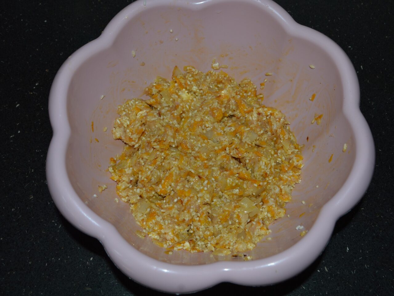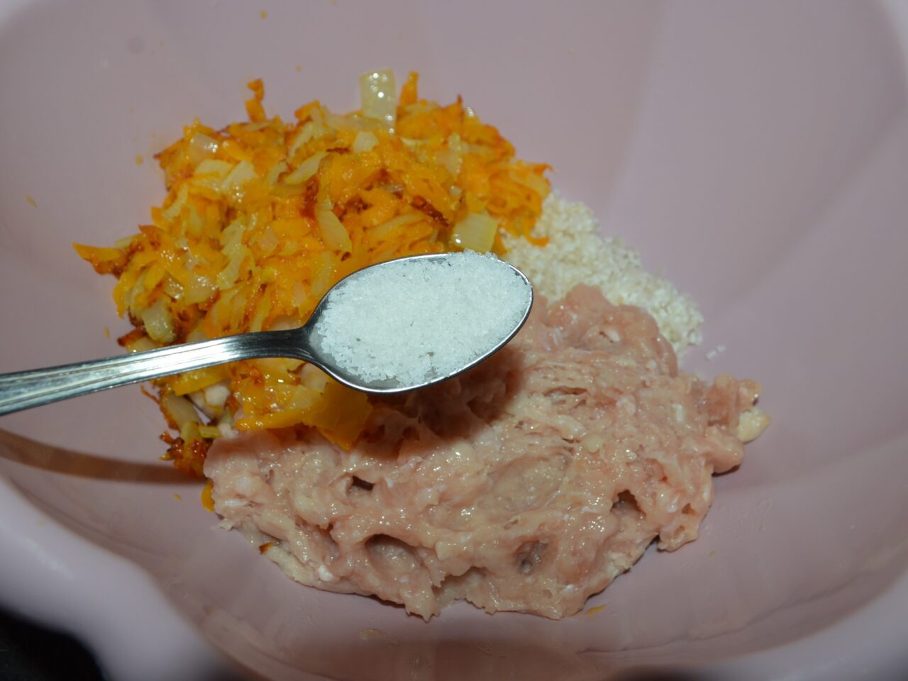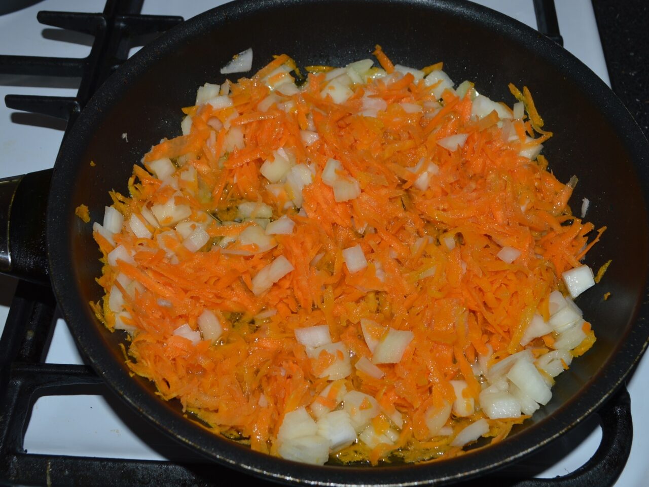- Chop the onion and grate the carrot. Fry the vegetables in a pan with preheated oil.