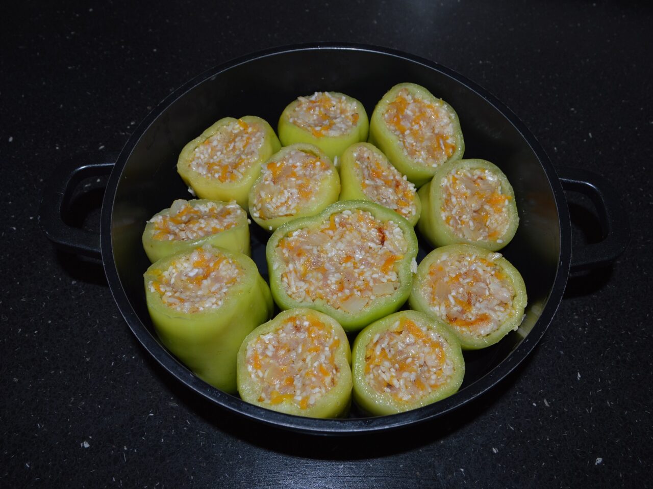 - Stuff the peppers with the prepared filling.