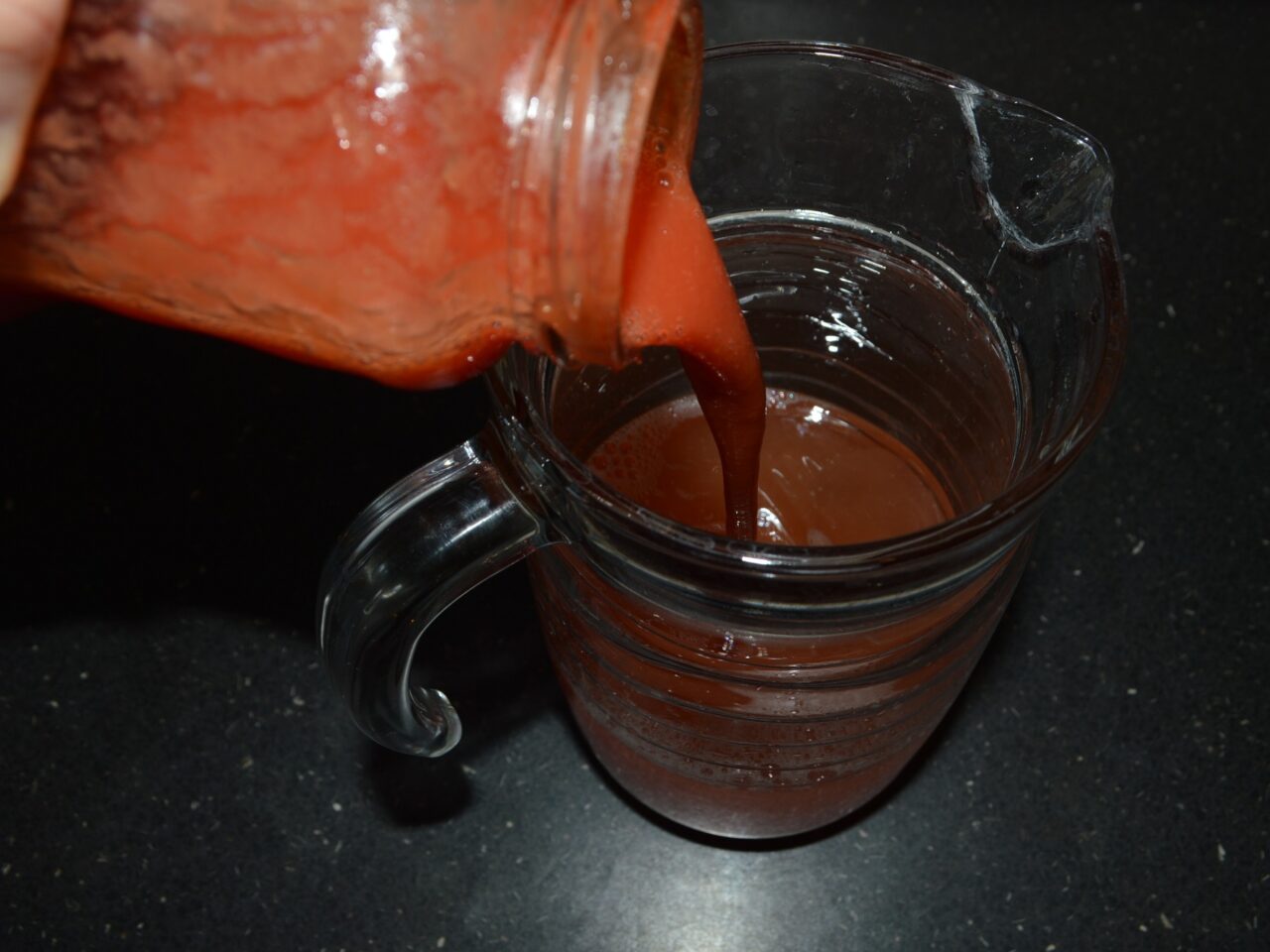 - Pour tomato juice into a jug of water, then stir gently with a spoon.
