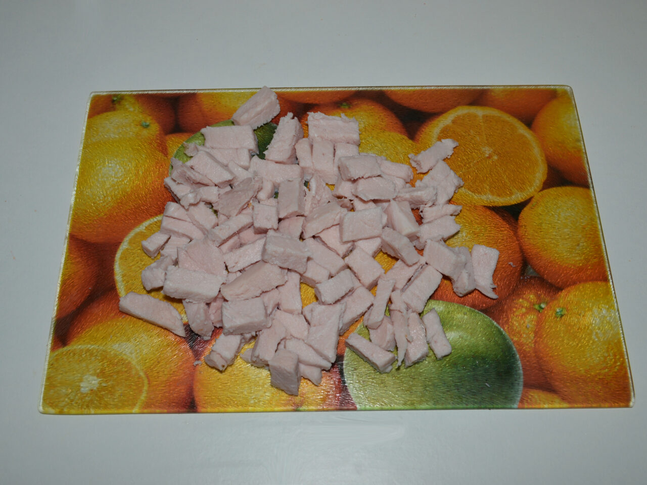 - Cut the smoked pastrami. You can use any kind of smoked meat.
