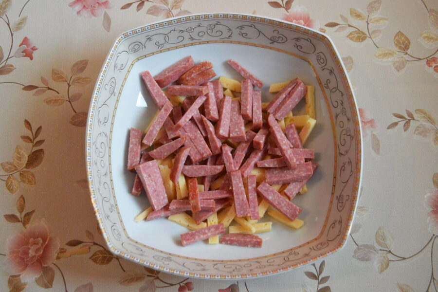 - Corta el salchichón en bastoncitos.