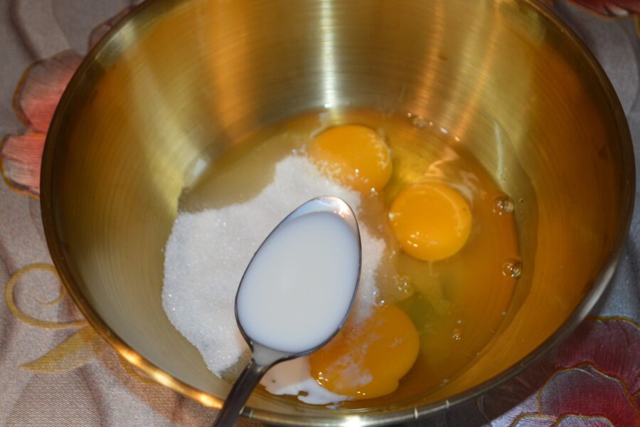 - En un bol hondo añade los huevos y el azúcar.