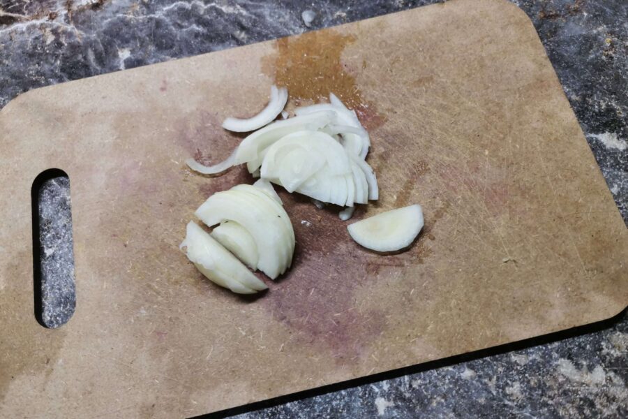 - Para evitar que la cebolla quede demasiado picante, es mejor marinarla. Ponla en un bol, añade una pequeña cantidad de agua hervida y una cucharadita de vinagre.