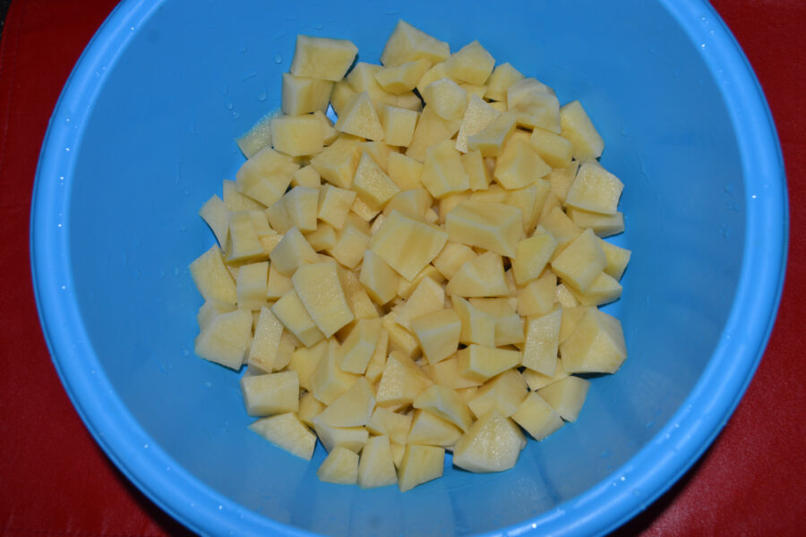 - Pelar las patatas, lavarlas y cortarlas en cubos.