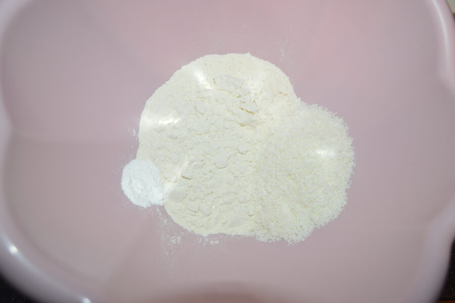 - En un bol aparte mezcla la harina con el coco rallado y la levadura química.