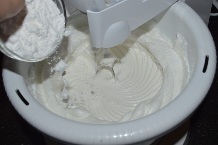- Al final incorpora el azúcar glas y bate un minuto más.