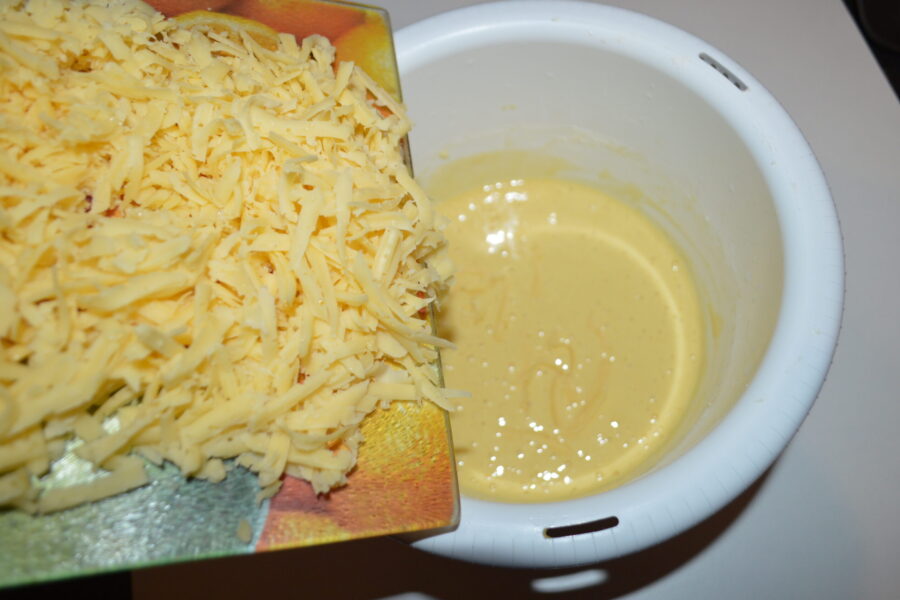 - Râper grossièrement le fromage et l’ajouter au bol.
