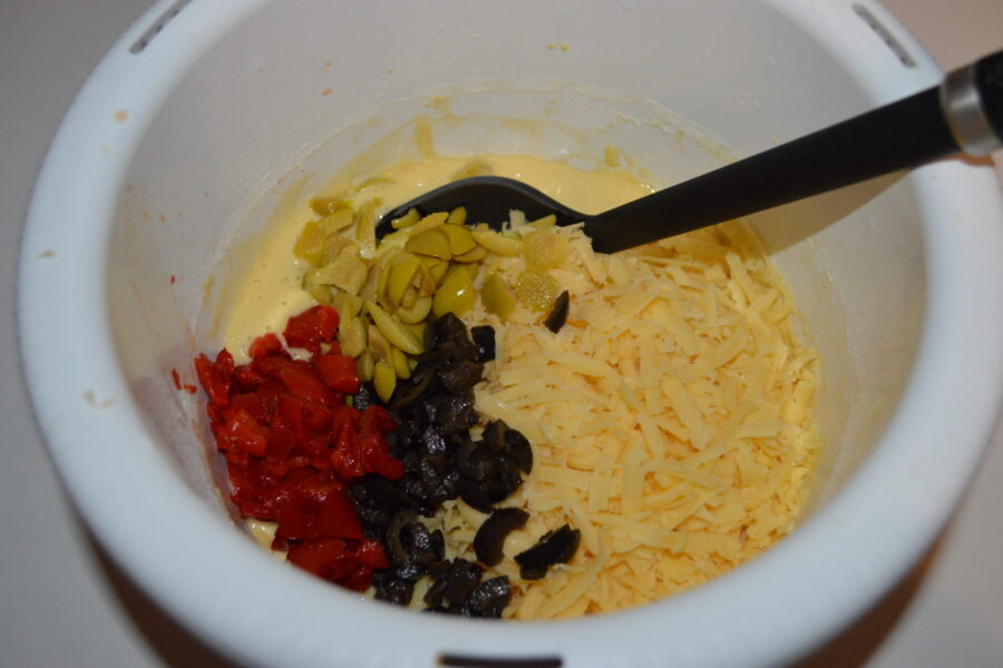 - Ajoutez ensuite les olives vertes hachées.