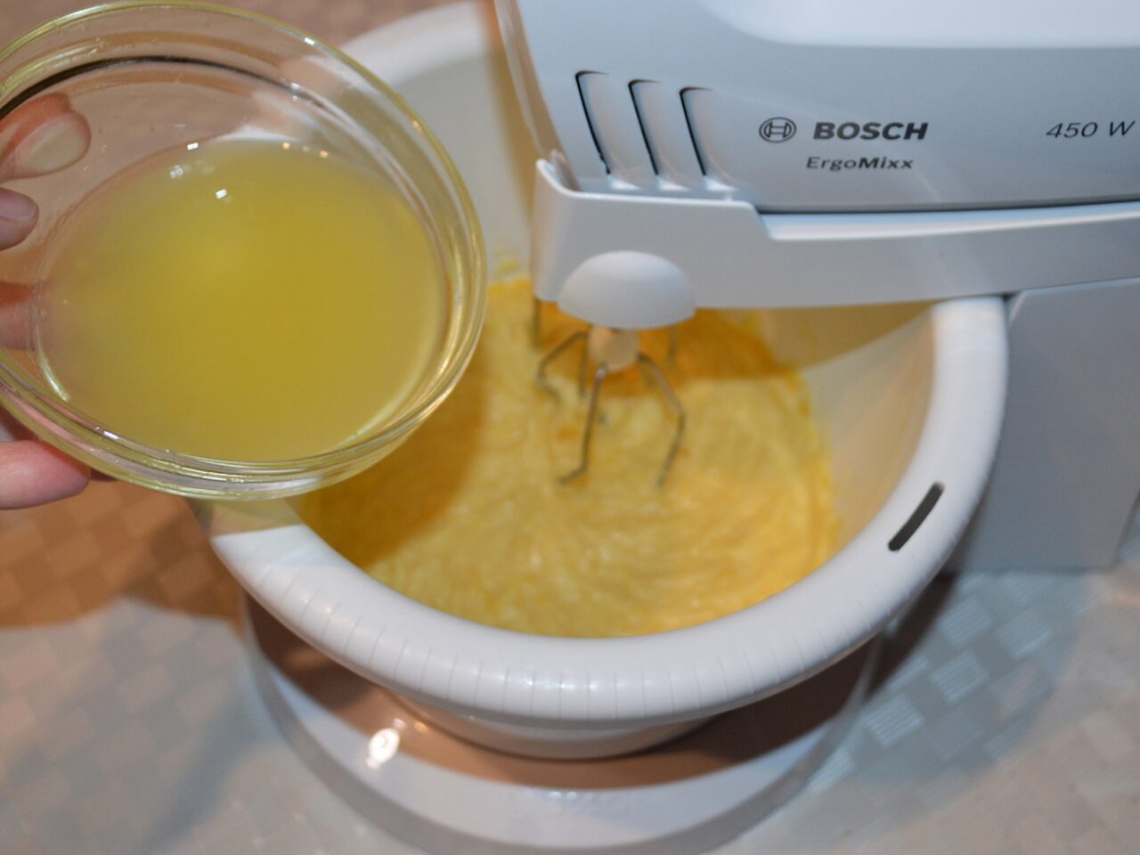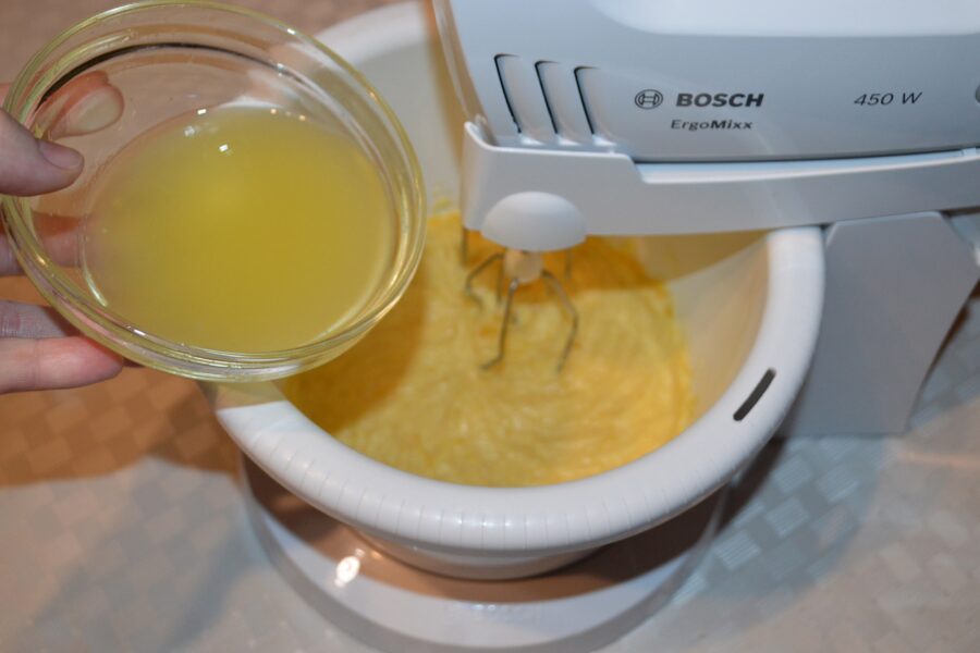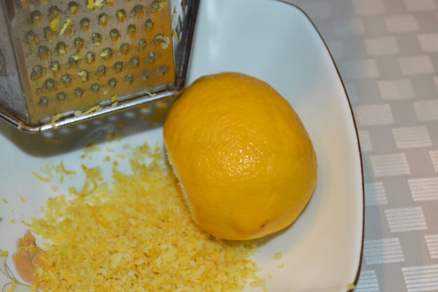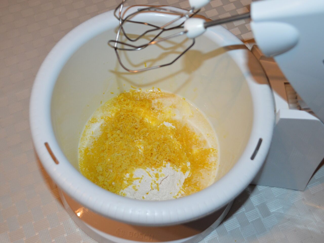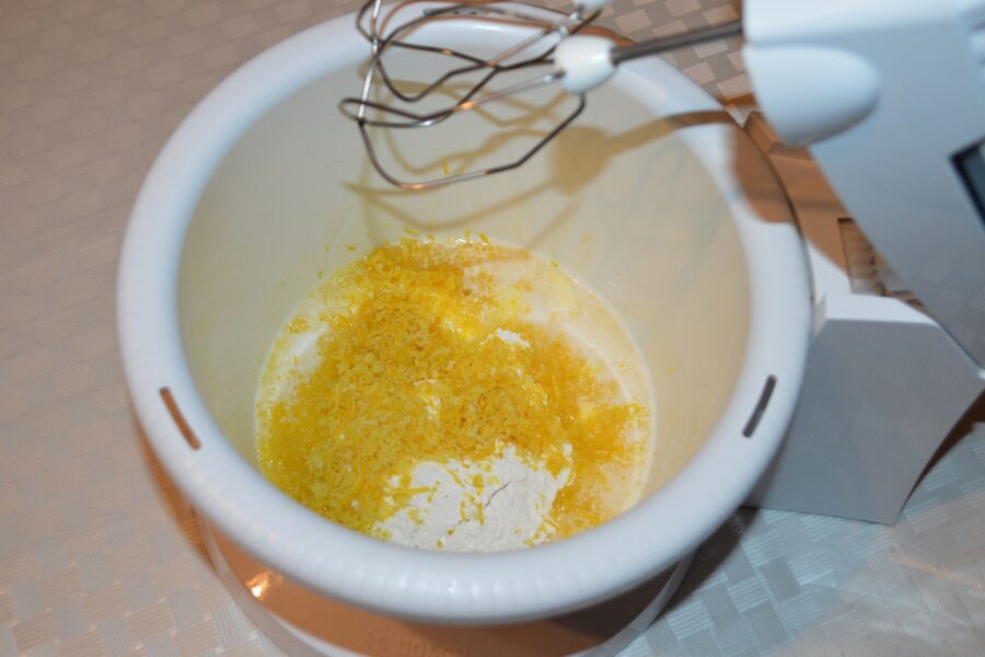 - Adaugati coaja de lamaie in bol si amestecati cu mixerul la viteza mica.
